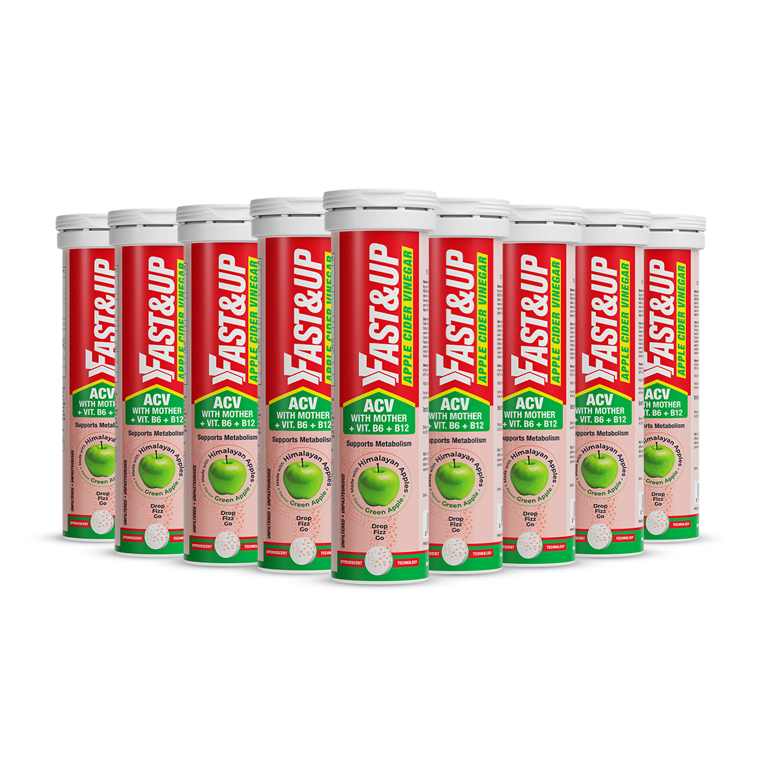 Fast&Up Apple Cider Vinegar is made with organic Himalayan apples is 100% natural & Unfiltered Apple Cider Vinegar. It contains the goodness of “Mother” with a fast- acting effervescent formula that helps in weight management. Fast&Up Apple Cider Vinegar contains Vit. B6 and B12 which help in fat mobilization and metabolism. It also contains Pomegranate and Beetroot extract packed with antioxidants that help maintain a healthy gut. Fast&Up Apple Cider Vinegar has no added sugar, is gluten-free and completely safe for Teeth enamel.