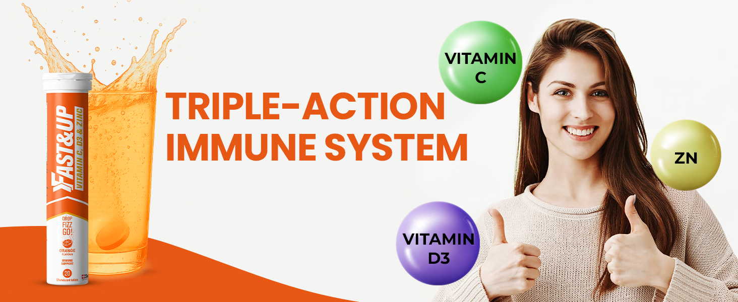 Fast&Up CDZ is a synergistic combination of powerful vitamins and minerals such as Vitamin C, Vitamin D3, and Elemental Zinc. This powerful triple-action formula contributes to improved immune health and provides protection against oxidative stress induced by intense physical exercise.