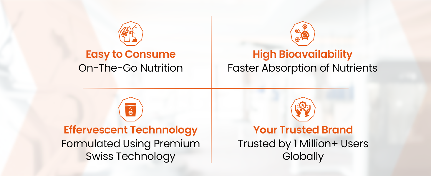 Fast&Up CDZ provides high doses of 1000 mg Vitamin C, 2000 IU Vitamin D3, and 10 mg Elemental Zinc. Fast&Up CDZ, specially formulated with Swiss Effervescent Technology, enables high bioavailability of the nutrients, is gentle on the stomach, and is easy to consume. Fast&Up CDZ effervescent supplement offers ultimate health protection for advanced daily immunity.
