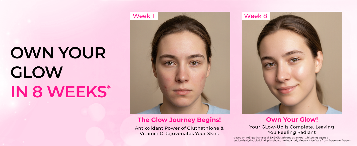 We are confident in the exceptional quality and effectiveness of Glow: The best Skin Brightening Solution out there! To demonstrate our commitment to your satisfaction and ensure your confidence in our product, we present to you our 8-week Money-Back Challenge. If you don't experience visible results within this period, we'll gladly refund your purchase*. Read more.