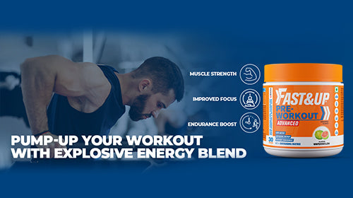 Fast&Up Pre -Workout is a pre-training supplement designed with 3 performance enhancing blends that helps to kick start muscle power, strength, maximizes energy and focus, minimizes muscle fatigue and fuels athletic performance.