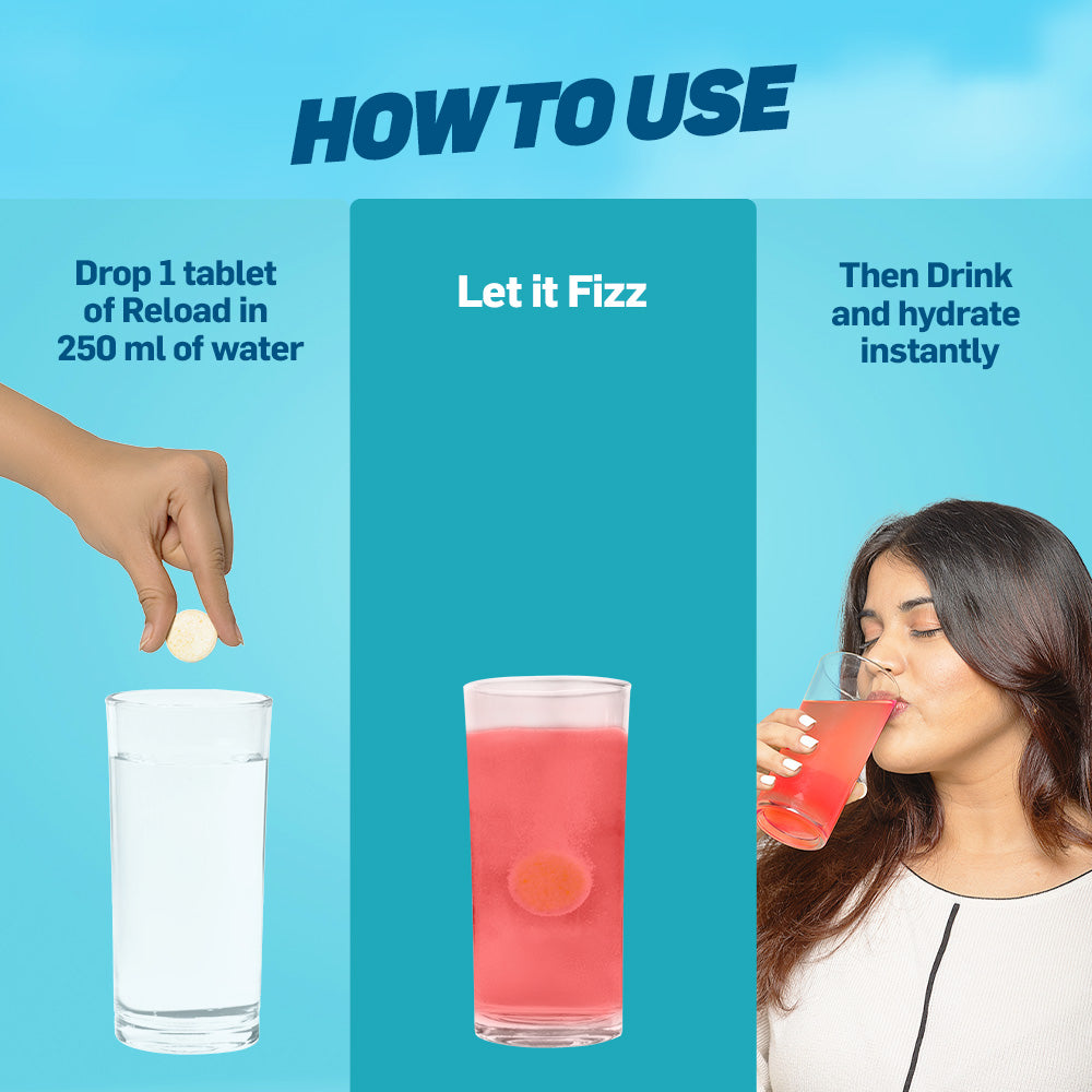 Fast&Up Reload is a premium hydration drink designed to provide instant hydration. Formulated with premium Swiss effervescent technology, it combines five essential electrolytes such as sodium, potassium, calcium, magnesium, and chloride, with added vitamin C and B12 to support faster hydration and electrolyte replenishment.
